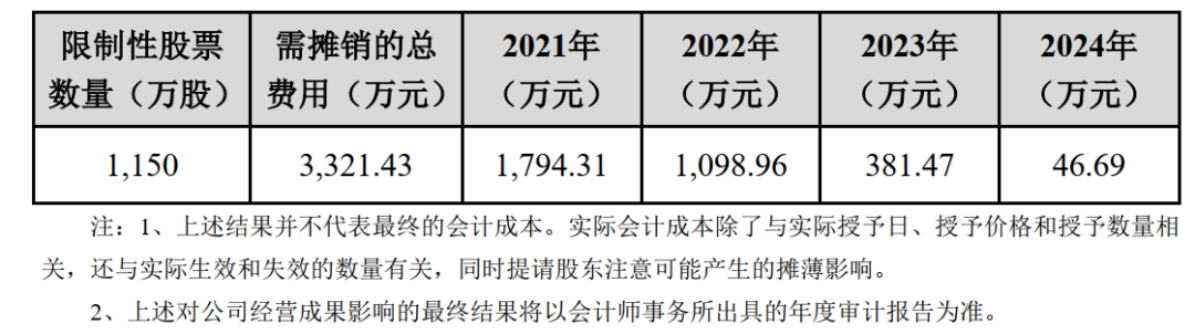 据suncitygroup太阳成生物的测算,此次激励计划总计涉及摊销费用3321.43万元,将在2021年至2024年四个年度进行摊销。